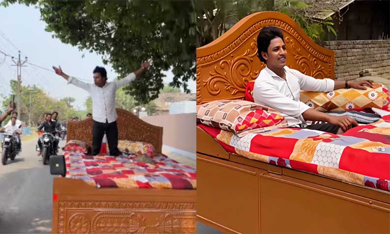 মুর্শিদাবাদের শম্ভুনগরের ডোমকল পৌরসভার ২৭ বছর বয়সী এক যুবক তার অনন্য সৃষ্টি – একটি চলমান খাট। এর জন্য অপ্রত্যাশিতভাবে ভাইরাল হয়ে উঠেছেন। দুর্ভাগ্যবশত, মোটরযান আইন লঙ্ঘনের জন্য ডোমকল পুলিশ গাড়িটি জব্দ করার পর তার ভাইরাল খ্যাতি কমে যায় বলে জানিয়েছে সংবাদ মাধ্যম।
