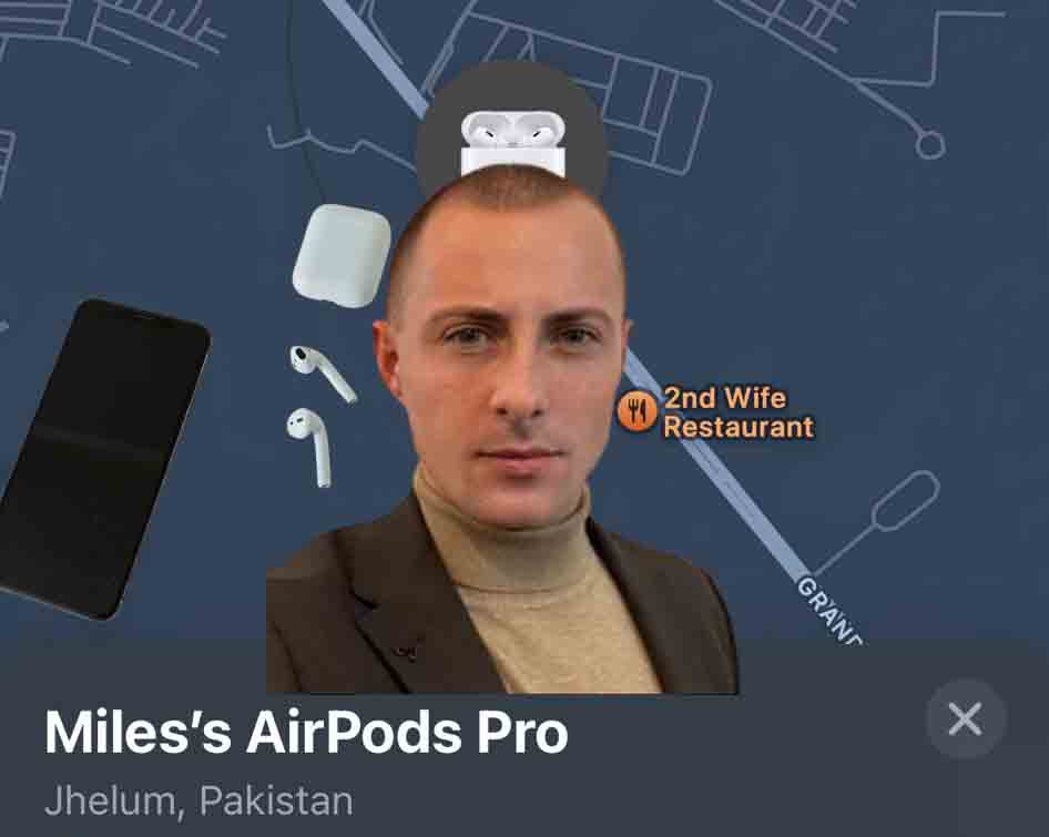 অ্যাপলের ফাইন্ড মাই অ্যাপ ব্যবহার করে, মাইলস পাকিস্তানের ঝিলামে “সেকেন্ড ওয়াইফ রেস্তোরাঁ” নামক একটি জায়গার কাছে এগুলো ট্র্যাক করেছিলেন। চেক করার মাত্র ৩১ মিনিট আগে ডিভাইসটি শেষবার সক্রিয় ছিল।